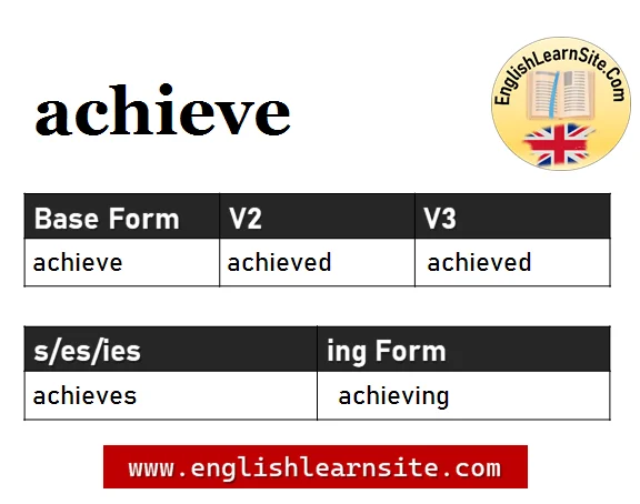 Achieve V1 V2 V3, Achieve Past and Past Participle Form Tense Verb 1 2 3