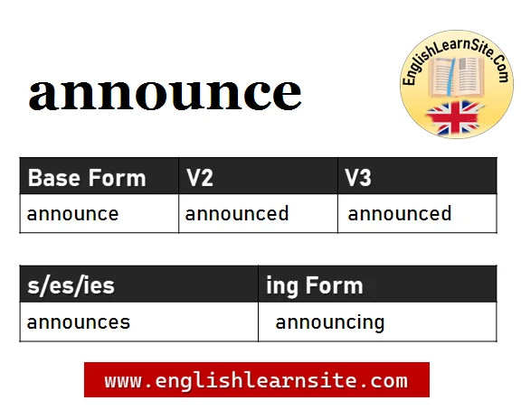 Announce V1 V2 V3, Announce Past and Past Participle Form Tense Verb 1 2 3
