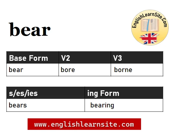 Bear V1 V2 V3, Bear Past and Past Participle Form Tense Verb 1 2 3