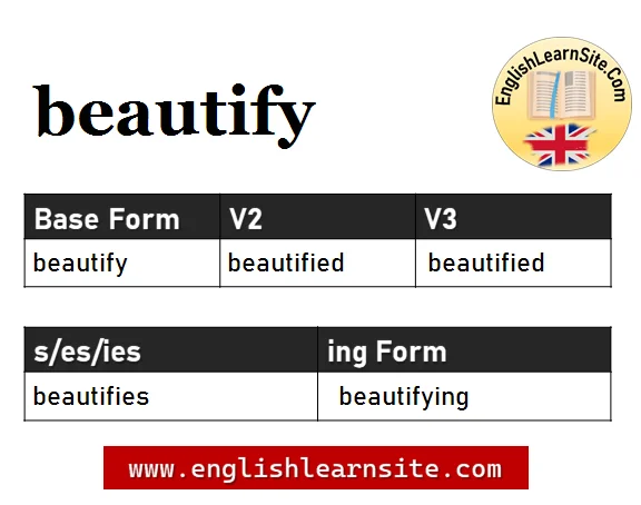 Beautify V1 V2 V3, Beautify Past and Past Participle Form Tense Verb 1 2 3
