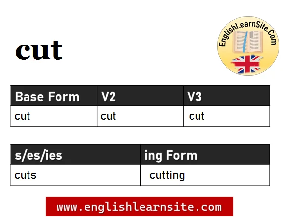 Cut V1 V2 V3, Cut Past and Past Participle Form Tense Verb 1 2 3