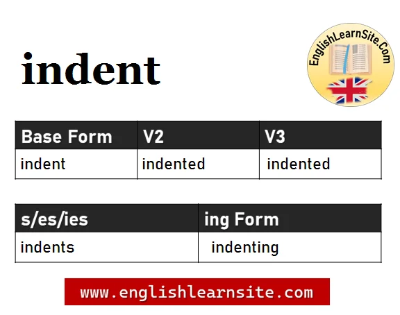 indent V1 V2 V3, indent Past and Past Participle Form Tense Verb 1 2 3