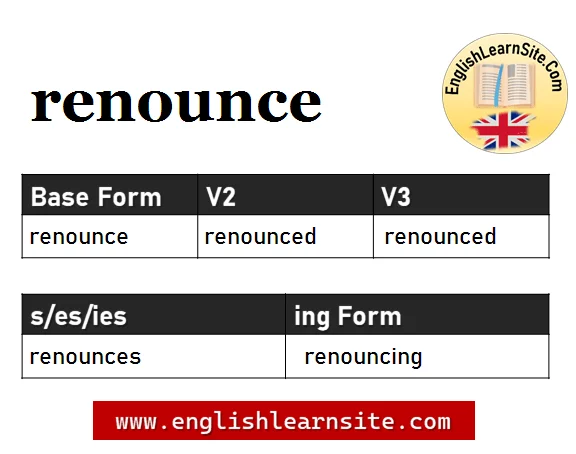 Renounce V1 V2 V3, Renounce Past and Past Participle Form Tense Verb 1 2 3