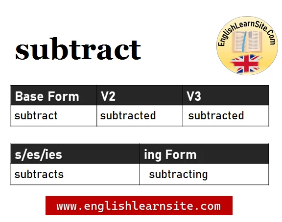 Subtract V1 V2 V3, Subtract Past and Past Participle Form Tense Verb 1 2 3