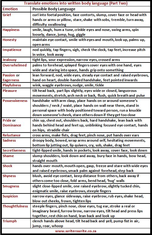 HomeGrammarTranslate Emotions Into Written Body LanguageTranslate Emotions Into Written Body Language admin 18 August 2016 Grammar, Vocabulary 1 Comment Translate Emotions Into Written Body LanguageThis post consist of explanation about emotion and possible body language. Follow the list; Tweet Pin It Related Posts Prepositions of Place – Visual Learning Method Another vs Other Using Quantity in EnglishAbout The Author adminOne Response kanonyi 1 May 2017 I’m fond of your topics,they help me improving my grammar level!
